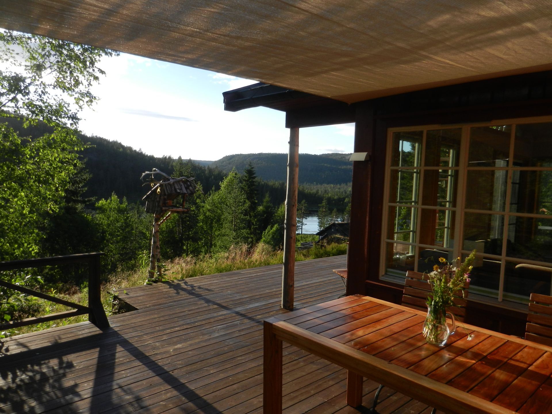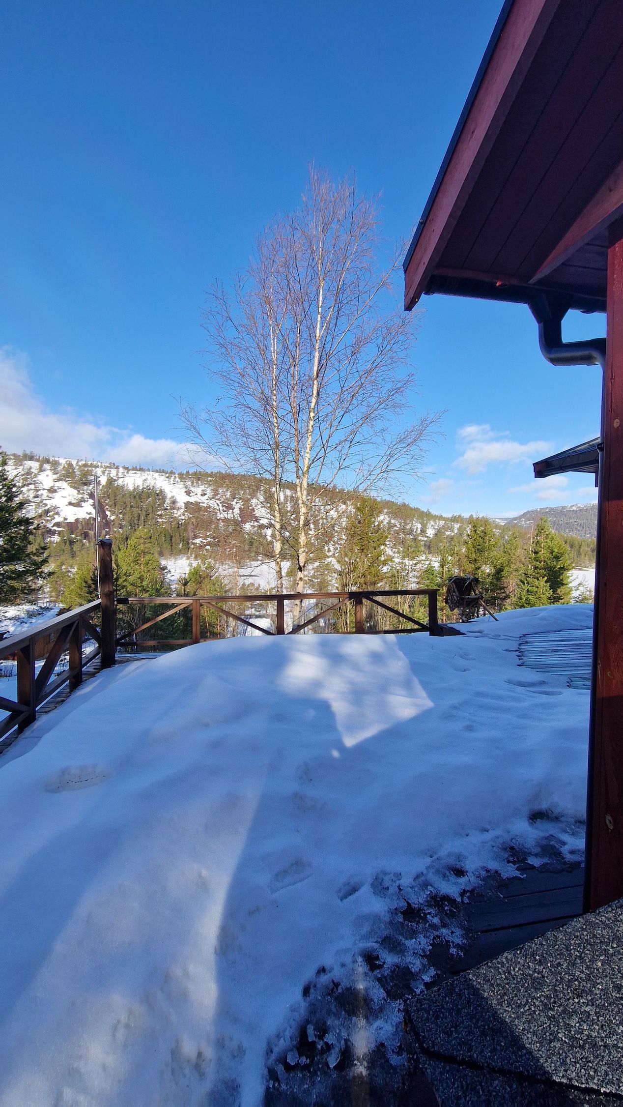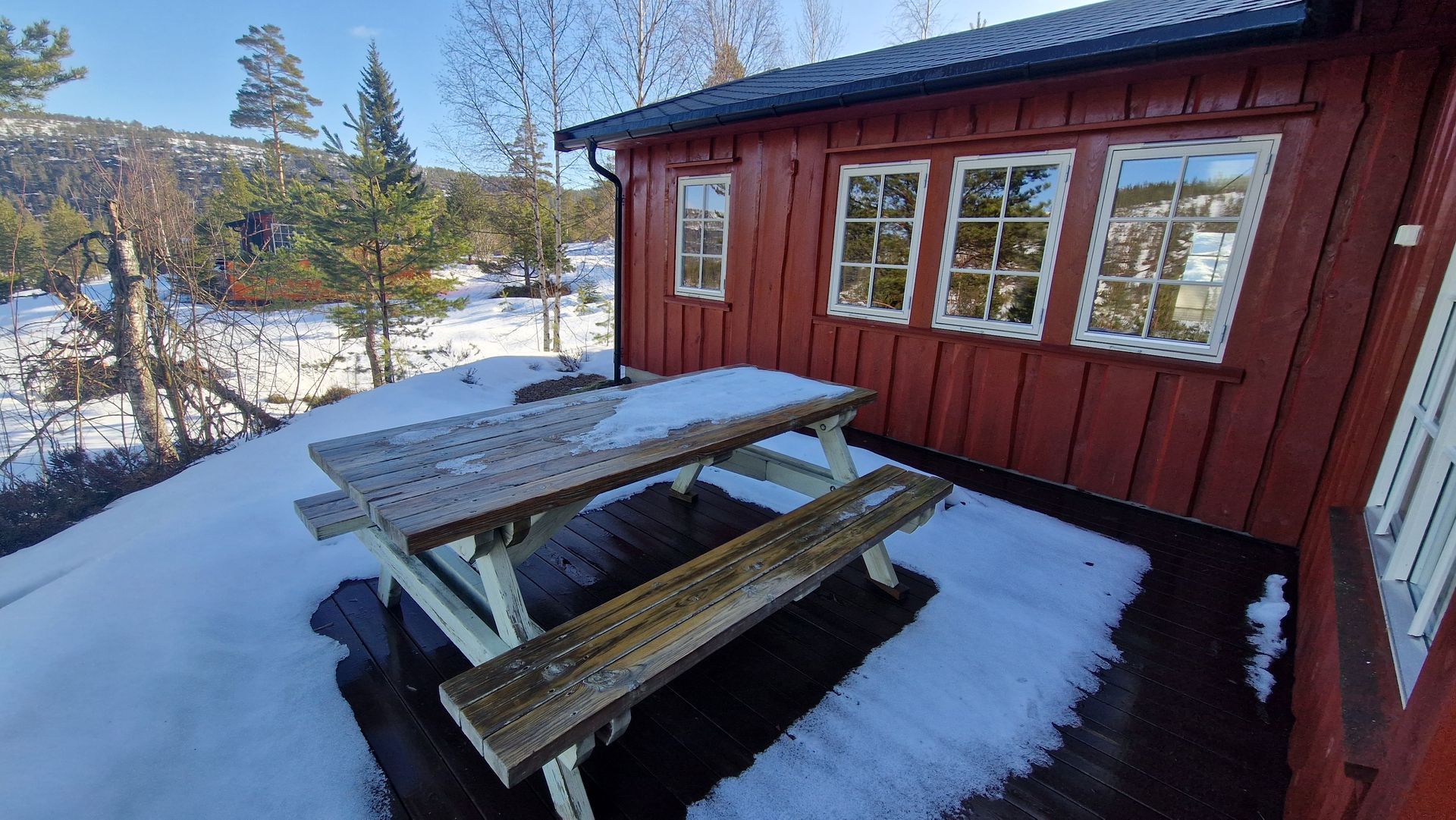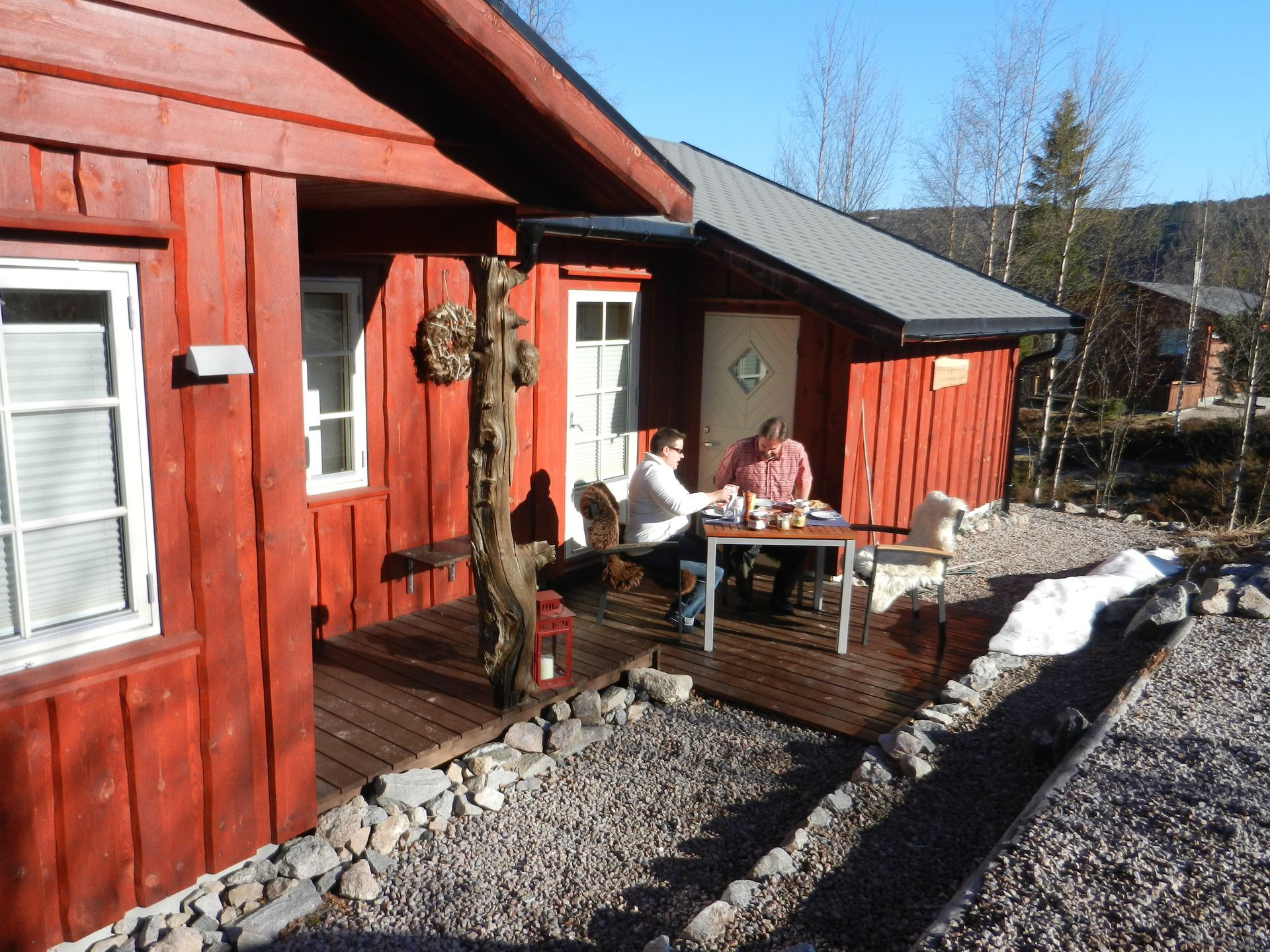 Im Aussenbereich lädt die ca. 75 m² große Terrasse mit einem tollen Blick auf den Havrefjell und Solholmsfjell zum Relaxen ein. Für die Terasse gibt es einen Holztisch mit Biergartenstühlen für 6 Personen, ein kleinen Holztische mit 4 Stühlen für 4 Personen, 2 Sonnenliegen, ein großes Sonnensegel - denn auch in Norwegen wird es im Sommer schnell mal über 30 Grad - sowie eine typisch norwegische, massive Sitzgruppe für 4-6 Personen.