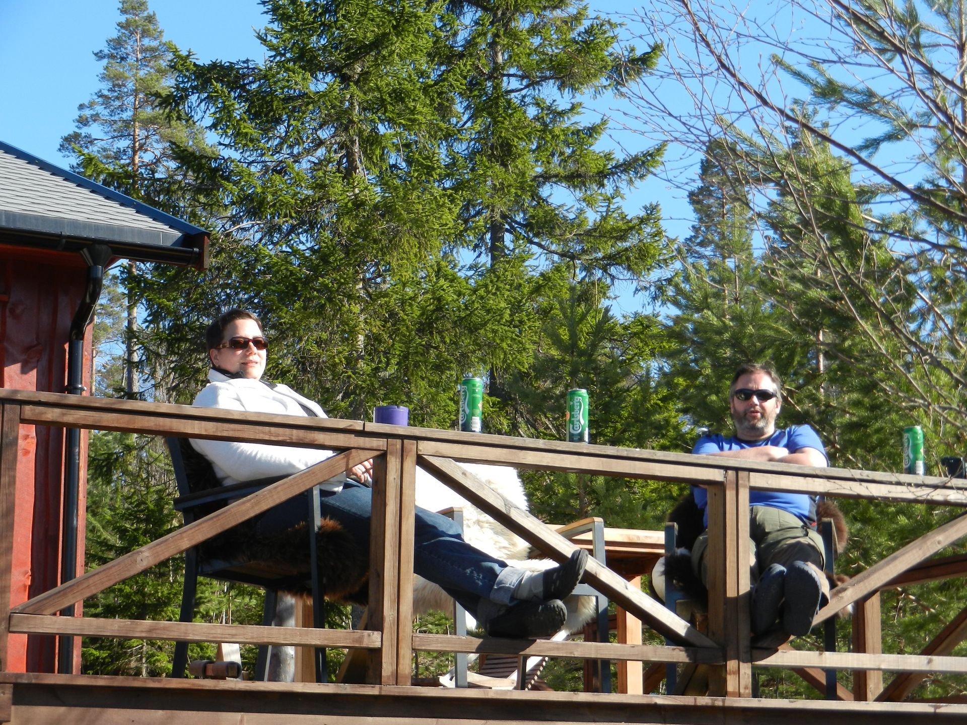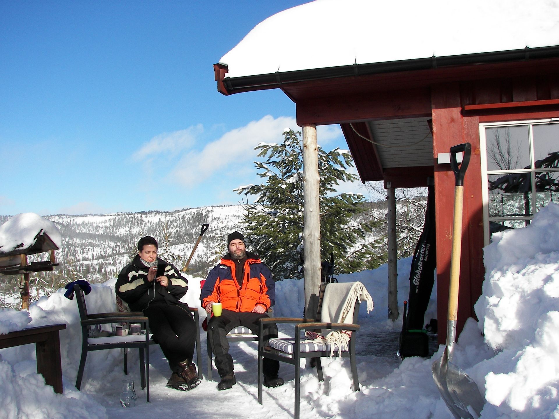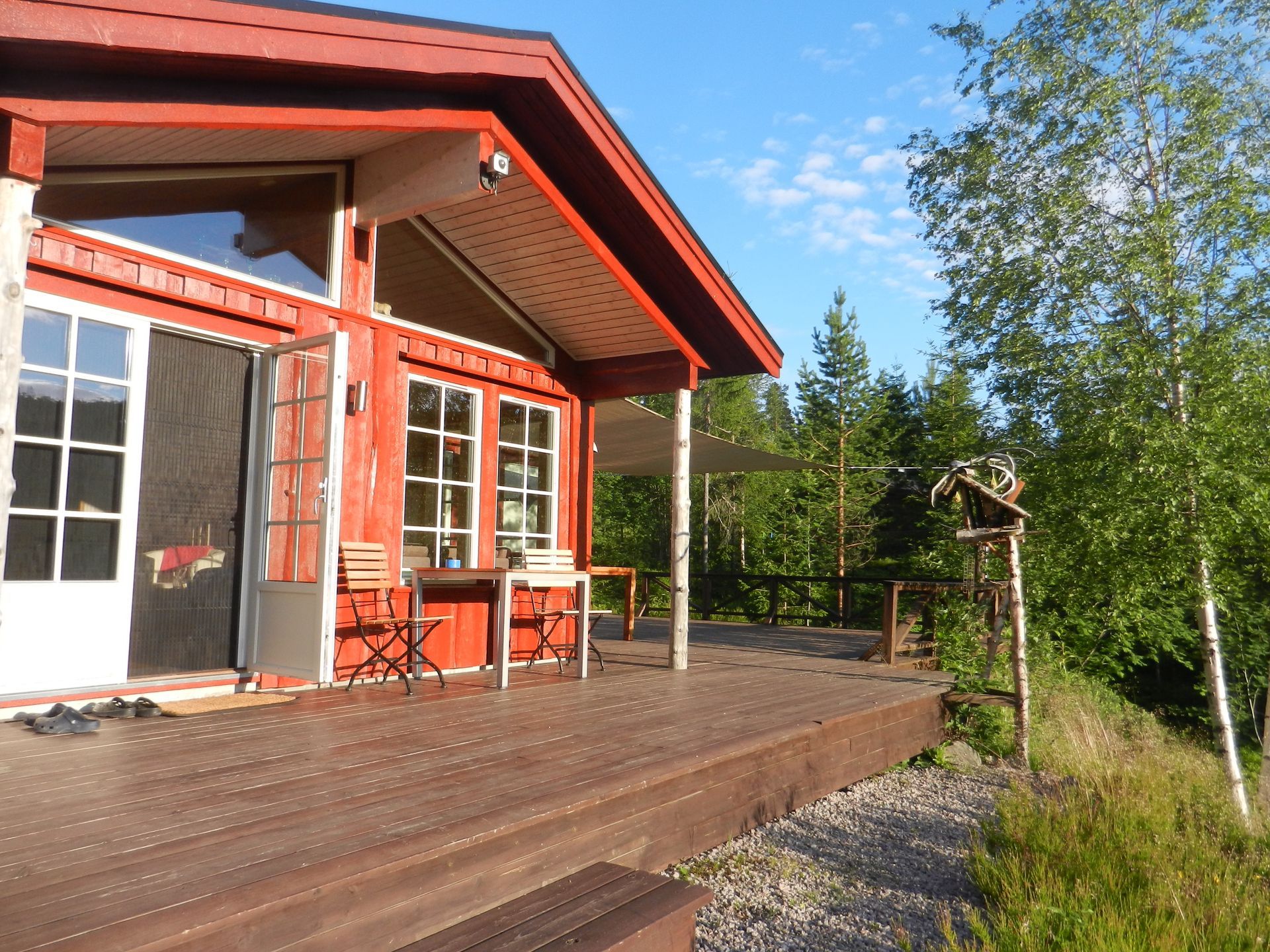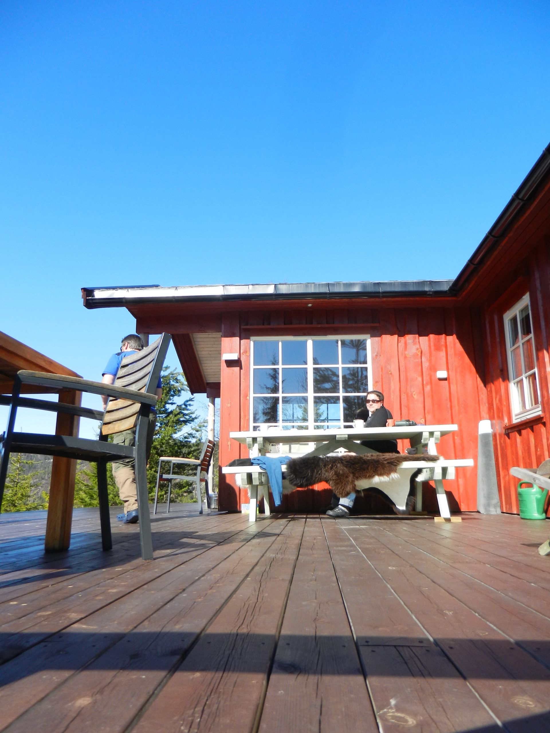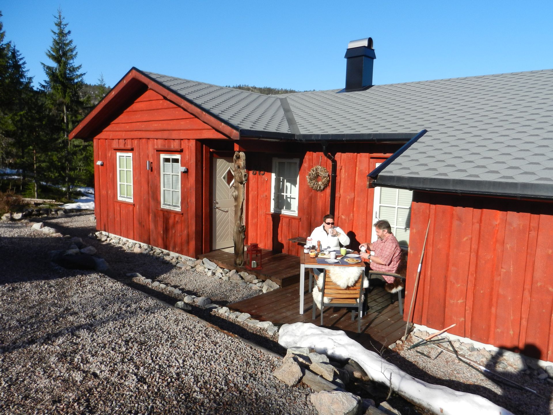 Im Aussenbereich lädt die ca. 75 m² große Terrasse mit einem tollen Blick auf den Havrefjell und Solholmsfjell zum Relaxen ein. Für die Terasse gibt es einen Holztisch mit Biergartenstühlen für 6 Personen, ein kleinen Holztische mit 4 Stühlen für 4 Personen, 2 Sonnenliegen, ein großes Sonnensegel - denn auch in Norwegen wird es im Sommer schnell mal über 30 Grad - sowie eine typisch norwegische, massive Sitzgruppe für 4-6 Personen.